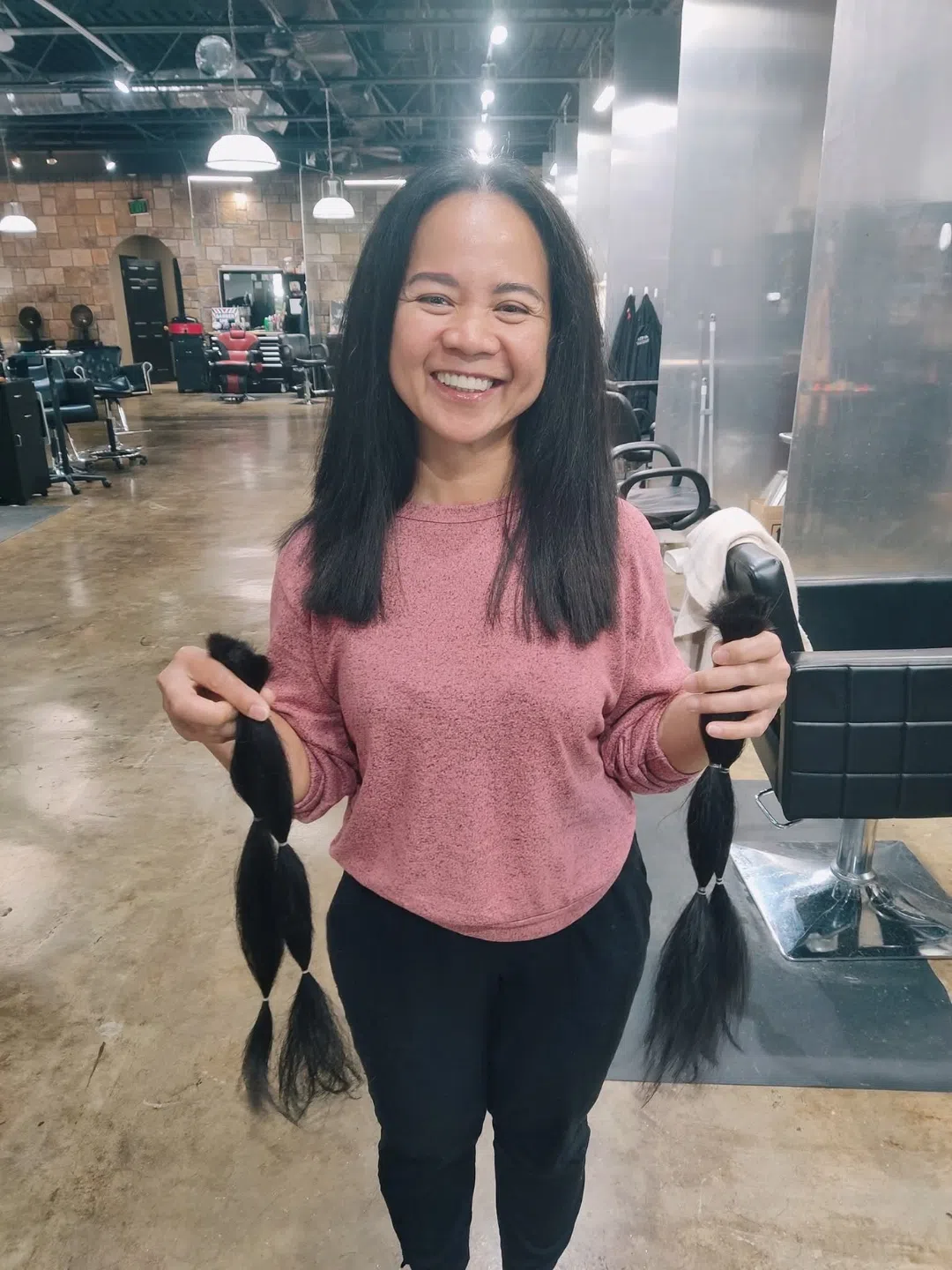 “Remember when I cut 16 inches off my hair back in the summer? I did it in her honor!! My best friend’s daughter — strong, beautiful, and brave beyond words — inspires me to grow my hair out again for my 4th donation. Every inch I grow will be in honor of her and all the incredible kids like her.”