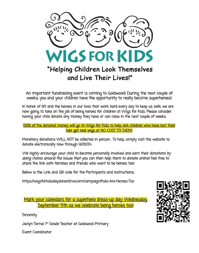 Thank You Goldwood Primary Students! Welcome to the Wigs For Kids Heroes Club!