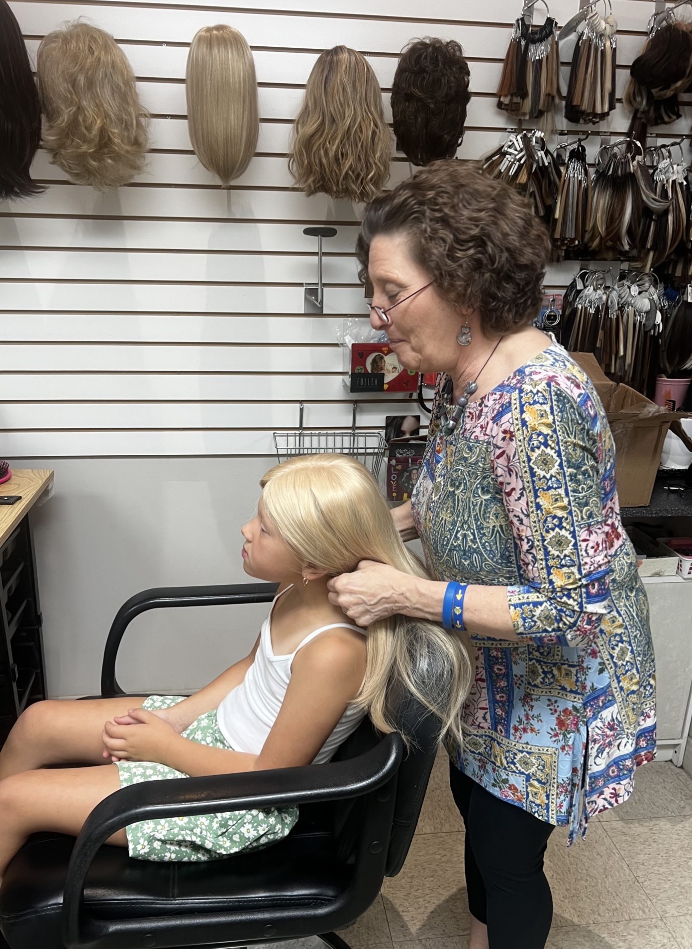 As a Certified Service Provider, Cathy has worked with several Wigs For Kids recipients, most recently Layla, who Cathy recalls as, “A joyful, confident child—radiating inspiration and strength.” Cathy gets to know the families she serves well, while helping them with wig fittings, color matching, styling, and ongoing support.