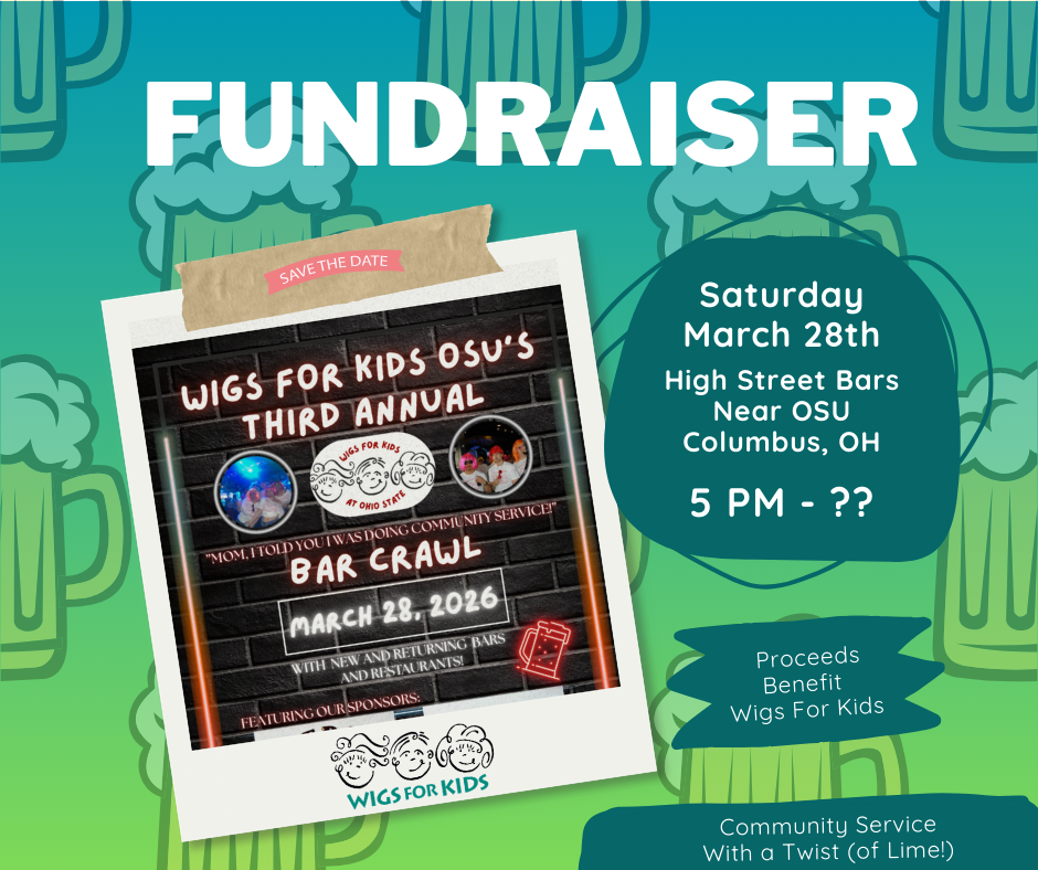 The student-led Wigs For Kids at Ohio State club is preparing for their Third Annual “Mom, I Told You I Was Doing Community Service” Bar Crawl.