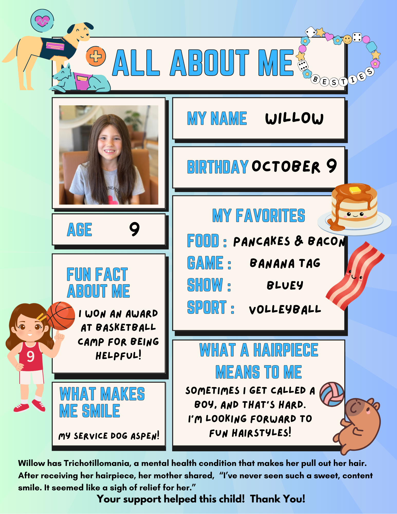 All contributions help us continue to gift hairpieces to kids like Willow!
