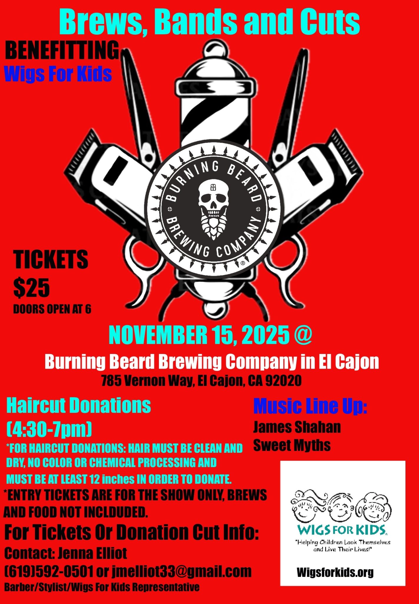 Burning Beard Brewing Company in El Cajon, California is teaming up with Wigs For Kids volunteer stylist Jenna Elliot of Boulevard Barber & Shave to make a difference for our kids!